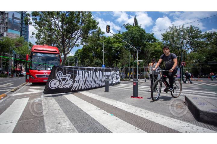 CIUDAD DE MÉXICO, 31AGOSTO2022.-Familiares de Rodrigo, niño atropellado hace año y medio en las calles de Azcapotzalco mientras iba en su bicicleta, bloquearon avenida de los Insurgentes para exigir justicia; pues según la madre ya se han realizado cinco peritajes y aún no hay avance en el caso. Hoy sería el cumpleaños número 15 del menor fallecido. FOTO: TOMAS ACOSTA / CUARTOSCURO.COM