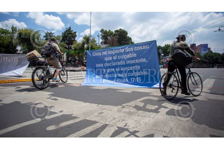 CIUDAD DE MÉXICO, 31AGOSTO2022.-Familiares de Rodrigo, niño atropellado hace año y medio en las calles de Azcapotzalco mientras iba en su bicicleta, bloquearon avenida de los Insurgentes para exigir justicia; pues según la madre ya se han realizado cinco peritajes y aún no hay avance en el caso. Hoy sería el cumpleaños número 15 del menor fallecido. FOTO: TOMAS ACOSTA / CUARTOSCURO.COM