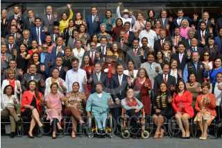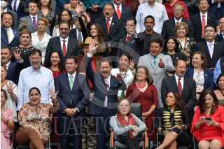 CIUDAD DE MÉXICO, 01SEPTIEMBRE2022.- El grupo parlamentario de Morena encabezados por el coordinador Ignacio Mier, se tomaron la fotografía oficial previo al inicio del segundo año de ejercicio de la Sexagésima Quinta Legislatura de la Cámara de Diputados. FOTO: MARIO JASSO/CUARTOSCURO.COM