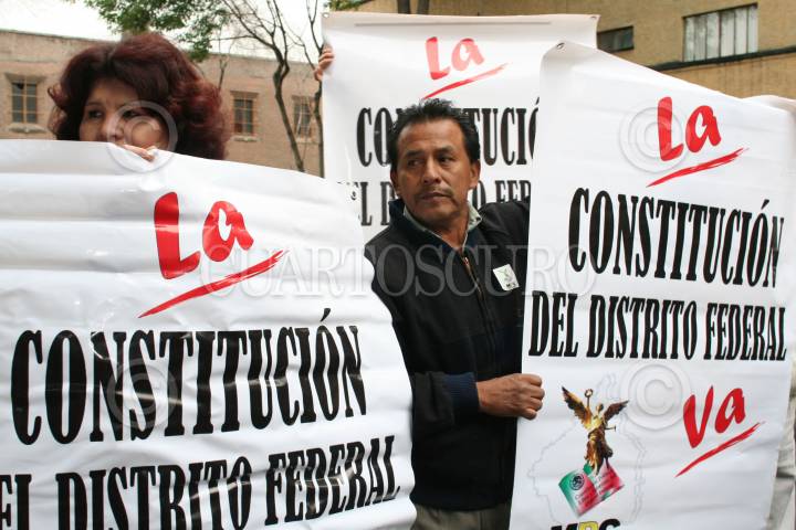MÈXICO, D.F. 05FEBRERO2007.- El jefe de gobierno capitalino Marcelo Ebrard Casaubòn conmemorò el aniversario de la Constituciòn. Afirmò que es necesario impulsar una constituciòn para el Distrito Federal. Al tèrmino de la ceremonia, un grupo de personas mostraron mantas a favor de la creaciòn la constituciòn local. FOTO: PAOLA HIDALGO/CUARTOSCURO.COM
