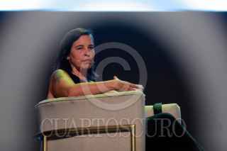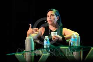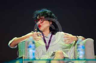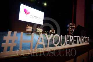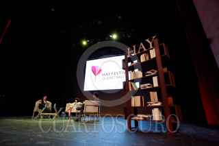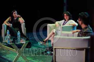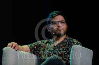 QUERÉTARO, QUERÉTARO, 02SEPTIEMBRE2022.- Amanda de la Garza, historiadora y curadora el arte; Lorena Wolffer, artista y activista cultural, y Joseph Zarate, periodista y editor de origen peruano, durante el segundo día de actividades del Hay Festival Querétaro. FOTO: CÉSAR GÓMEZ/CUARTOSCURO.,COM