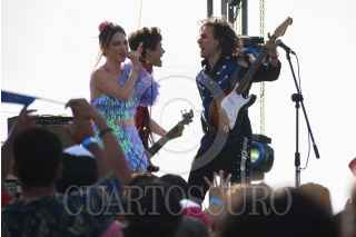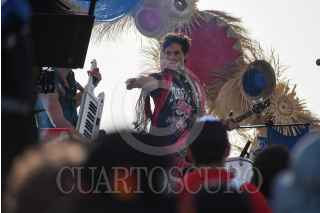 CAMPECHE, CAMPECHE, 02SEPTIEMBRE2022.-Durante el tercer día de grabaciones de la serie de Disney, Papás por Encargo, el elenco artístico grabo escenas dando un concierto junto con la cantante Paty Cantú en el malecón de la ciudad. FOTO: MICHAEL BALAM/CUARTOSCURO.COM