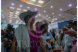 CIUDAD DE MÉXICO, 03SEPTIEMBRE2022.-Se llevó a cabo la premiación de la convocatoria "¿A qué sabe la Patria?", en el Complejo Cultural Los Pinos. En la ceremonia participaron representantes de 29 estados de la República. Doña Luisa Anaya Pérez, de la comunidad Santiago de Anaya Hidalgo, fue la ganadora al primer lugar con su platillo "Conejo horneado relleno de flores". FOTO: TOMAS ACOSTA / CUARTOSCURO.COM