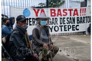 SAN BARTOLO COYOTEPEC, OAXACA 05SEPTIEMBRE2022.- Habitantes de San Bartolo Coyotepec, municipio conurbado a la capital de Oaxaca, tomaron la madrugada de este lunes las instalaciones de la Envasadora Gugar, ubicada en esa población, para exigir el retiro de la empresa a quien acusan de saquear el agua de la comunidad. FOTO: CAROLINA JIMÉNEZ/CUARTOSCURO.COM