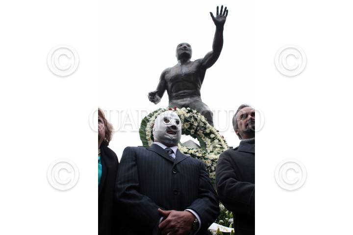 MÈXICO, D.F. 05FEBRERO2007.- Se conmemorò el 23 aniversario luctuoso de la muerte de Rodolfo Guzmán Huerta "El Santo". En la imagen el hijo del Santo durante la ceremonia. FOTO: PAOLA HIDALGO/CUARTOSCURO.COM