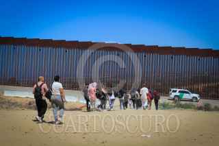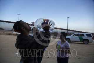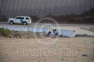 TIJUANA, BAJA CALIFORNIA, 05SEPTIEMBRE2022.-Un grupo de migrantes fue observado esta mañana a la altura del Soler, en el muro fronterizo que divide México de Estados Unidos. Decenas de migrantes de provenientes de Colombia y Brasil, lograron cruzar el muro para entregarse a los agentes fronterizos. Durante horas las personas esperaron pegadas al muro intentando resguardarse de los intensos rayos del Sol. De manera diaria, personas intentan cruzar el muro fronterizo huyendo muchas veces de situaciones de violencia, con la intención de pedir asilo político para salvaguardar sus vidas. FOTO: OMAR MARTÍNEZ /CUARTOSCURO.COM