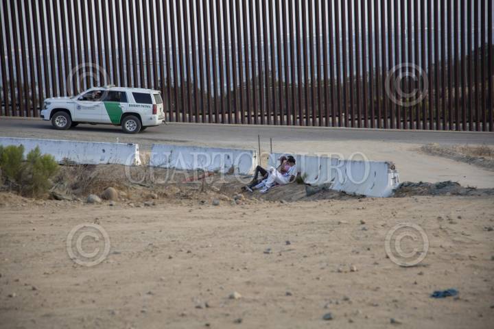TIJUANA, BAJA CALIFORNIA, 05SEPTIEMBRE2022.-Un grupo de migrantes fue observado esta mañana a la altura del Soler, en el muro fronterizo que divide México de Estados Unidos. Decenas de migrantes de provenientes de Colombia y Brasil, lograron cruzar el muro para entregarse a los agentes fronterizos. Durante horas las personas esperaron pegadas al muro intentando resguardarse de los intensos rayos del Sol. De manera diaria, personas intentan cruzar el muro fronterizo huyendo muchas veces de situaciones de violencia, con la intención de pedir asilo político para salvaguardar sus vidas. FOTO: OMAR MARTÍNEZ /CUARTOSCURO.COM