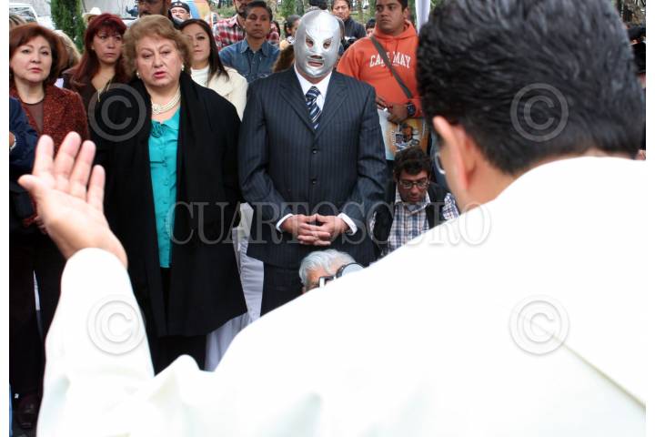 MÈXICO, D.F. 05FEBRERO2007.- Se conmemorò el 23 aniversario luctuoso de la muerte de Rodolfo Guzmán Huerta "El Santo". En la imagen el hijo del Santo durante la ceremonia. FOTO: PAOLA HIDALGO/CUARTOSCURO.COM