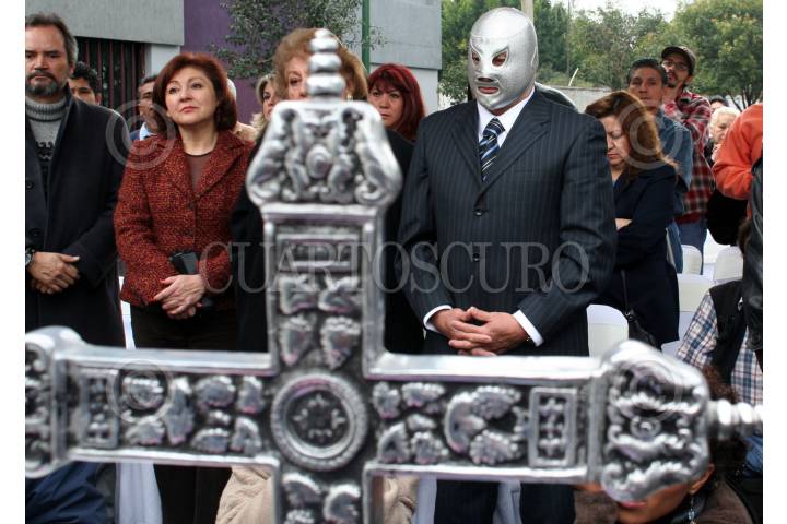 MÈXICO, D.F. 05FEBRERO2007.- Se conmemorò el 23 aniversario luctuoso de la muerte de Rodolfo Guzmán Huerta "El Santo". En la imagen el hijo del Santo durante la ceremonia. FOTO: PAOLA HIDALGO/CUARTOSCURO.COM