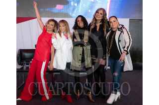 CIUDAD DE MÉXICO, 06SEPTIEMBRE2022.- Las integrantes de las agrupaciones musicales Flans y Pandora ofrecieron conferencia de prensa en las inmediaciones de la Arena Ciudad de México de cara a su presentación el próximo 23 de septiembre en el recinto. Ilse y Mimi (Flans), así como Isabel Lascuain, Fernanda Meade y Mayte Lascurain (Pandora) expresaron que al principio no estaban seguras de la colaboración pero ahora saben que será un show increíble pues lo tuvieron que ensayar hasta nueve veces. FOTO: GALO CAÑAS/CUARTOSCURO.COM