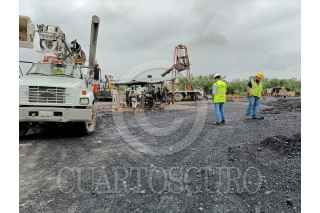 SABINAS, COAHUILA, 06SEPTIEMBRE2022.- La Coordinadora Nacional de Protección Civil (CNPC) y la Comisión Federal de Electricidad dieron inicio a la nueva etapa de trabajos de rescate en el complejo minero de El Pinabete. La nueva fase contempla realizar una excavación de 450 metros de largo, por 320 de ancho y 60 metros de profundidad para extraer un volumen de 5.6 millones metros cúbicos de tierra. A fin de poder ingresar en las galerías que actualmente se encuentran inundadas. FOTO: ESPECIAL/CUARTOSCURO.COM