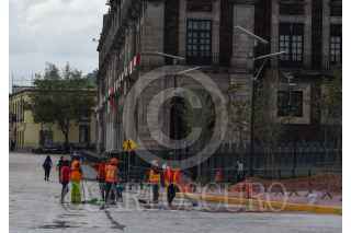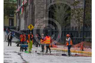 TOLUCA, ESTADO DE MÉXICO, 06SEPTIEMBRE2022.- A un día de ser inaugurada la remodelación de la Plaza de los Mártires, trabajadores lavan la avenida Lerdo la cual también fue repavimentada como parte de la obra de remodelación. FOTO: CRISANTA ESPINOSA AGUILAR /CUARTOSCURO.COM