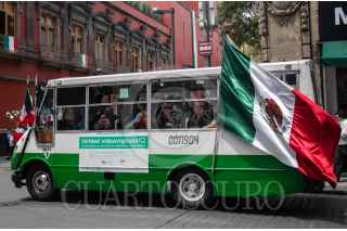 CIUDAD DE MÉXICO, 06SEPTIEMBRE2022.- Un microbus con Bandera de México realiza su ruta por el Centro Histórico. FOTO: ANDREA MURCIA /CUARTOSCURO.COM