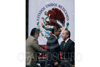 MÉXICO D.F. 05FEBRERO2007.- El gobernadro de Chiapas, Juan Sabines y Felipe Calderón Hinojosa, Presidente de la República, durante la ceremonia del CL Aniversario de la Constitución Política de 1857 y del XC Aniversario de la Constitución Política de 1917. FOTO: NELLY SALAS/CUARTOSCURO.COM