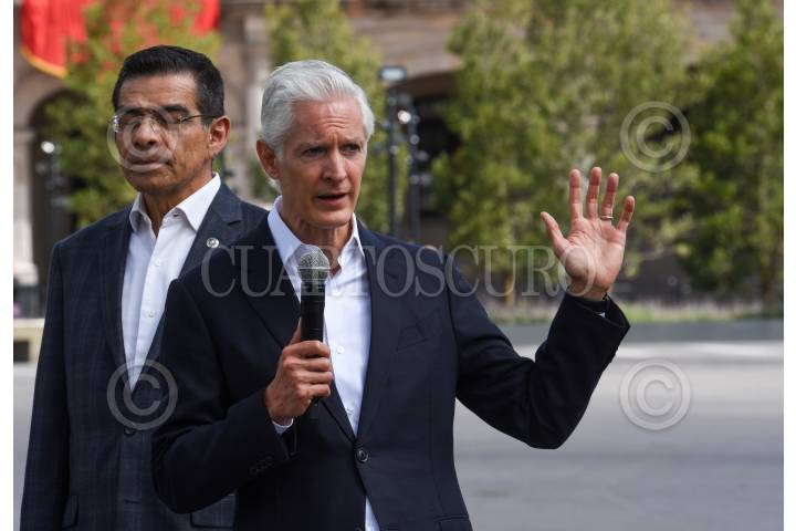 TOLUCA, ESTADO DE MÉXICO, 07SEPTIEMBRE2022.- Alfredo del Mazo Maza, Gobernador del Estado de México encabezó la entrega de la remodelación de la Plaza de los Mártires, acompañado por su esposa Fernanda Castillo de Del Mazo, Enrique Jacob Rocha Presidente de la Mesa Directiva de la LXI Legislatura, Ricardo Sodi Cuellar, presidente del TSJEM, Maurilio Hernández presidente de la JUCOPO. La rehabilitación tuvo una inversión de 50 MDP, con una área intervenida de 14 mil metros cuadrados, más de 250 árboles de acacia, lavandas, agapandos, romeros, helechos y cissus. FOTO: CRISANTA ESPINOSA AGUILAR /CUARTOSCURO.COM