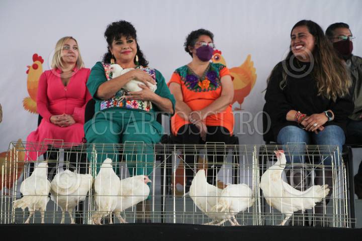 CIUDAD DE MÉXICO, 07SEPTIEMBRE2022.- Clara Brugada, alcaldesa de Iztapalapa, encabezó el inicio del programa “Huevos en Casa”, que está destinado para la autosuficiencia alimentaria para mujeres de Iztapalapa. Durante el evento se entregaron dos mil gallinas a doscientas familias; es decir, a cada familia se le entregó una caja con diez gallinas en la Utopía Meyehualco. FOTO: GRACIELA LÓPEZ /CUARTOSCURO.COM