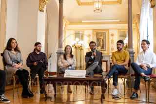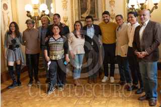 CIUDAD DE MÉXICO, 07AGOSTO2022.- Jaime Rosales, Roberto Sosa López, Cristian David, Alfredo Millan, Gustavo Gerardo Suárez y Melba Vidal, ofrecieron detalles de la Vigésima sexta entrega de los Premios de la Agrupación de Críticos y Periodistas de Teatro que se realizarán en el Teatro de la Ciudad Esperanza Iris. FOTO: MOISÉS PABLO/CUARTOSCURO.COM