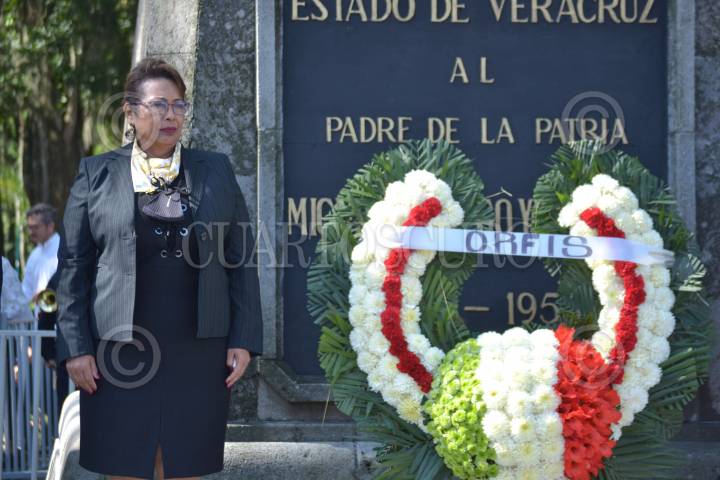 XALAPA, VERACRUZ, 07SEPTIEMBRE2022.- El secretario de Seguridad Pública, Hugo Gutiérrez Maldonado y la titular del Órgano de Fiscalización (ORFIS), Delia González Cobos, acudieron a su respectiva Guardia de Honor al monumento Miguel Hidalgo con motivo de la Independencia de México. FOTO: YERANIA ROLÓN/CUARTOSCURO.COM