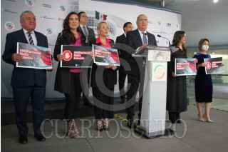 CIUDAD DE MÉXICO, 07SEPTIEMBRE2022.- El senador Julen Rementería, coordinador del grupo parlamentario del PAN, acompañado de senadores, ofreció una conferencia de prensa para protestar en contra de la militarización del país, en el Patio del Federalismo. FOTO: GRACIELA LÓPEZ / CUARTOSCURO.COM