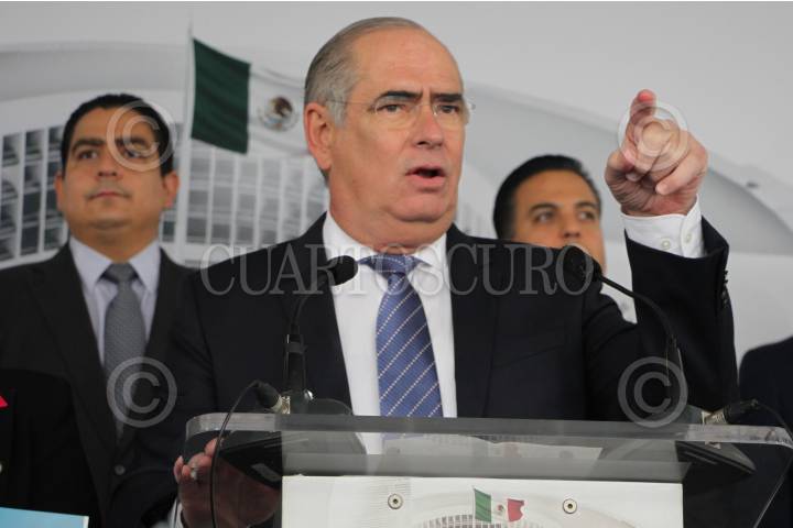 CIUDAD DE MÉXICO, 07SEPTIEMBRE2022.- El senador Julen Rementería, coordinador del grupo parlamentario del PAN, acompañado de senadores, ofreció una conferencia de prensa para protestar en contra de la militarización del país, en el Patio del Federalismo. FOTO: GRACIELA LÓPEZ / CUARTOSCURO.COM