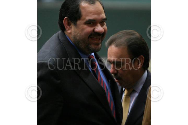 MÉXICO, D.F., 06FEBRERO2007.-El diputado perredista Ottón Cuevas, sostiene un busto de Benito Juárez, durante la sesión en el salón de plenos de la Cámara de Diputados. FOTO: MOISÉS PABLO/CUARTOSCURO.COM