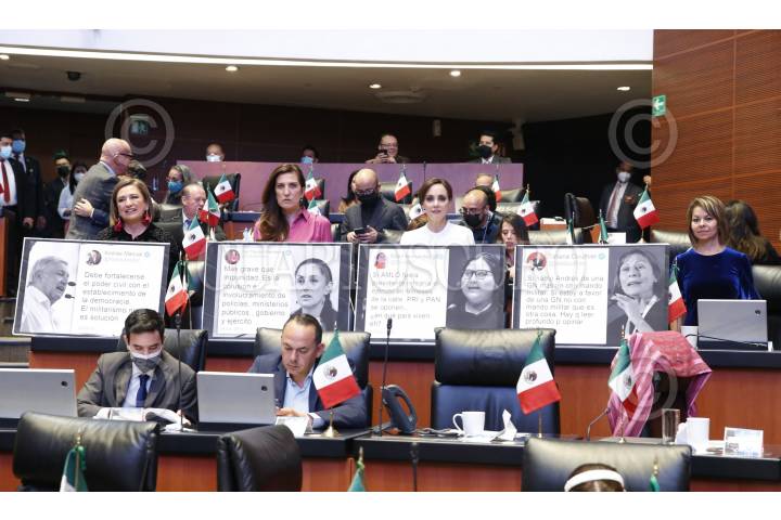 CIUDAD DE MÉXICO, 08AGOSTO2022.- Senadores panistas se manifestaron en contra de la incorporación de la Guardia Nacional al mando total de la Secretaría de la Defensa, durante la sesión en la que discute esta ley. FOTO: CUARTOSCURO.COM