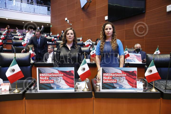 CIUDAD DE MÉXICO, 08AGOSTO2022.- Senadores panistas se manifestaron en contra de la incorporación de la Guardia Nacional al mando total de la Secretaría de la Defensa, durante la sesión en la que discute esta ley. FOTO: CUARTOSCURO.COM