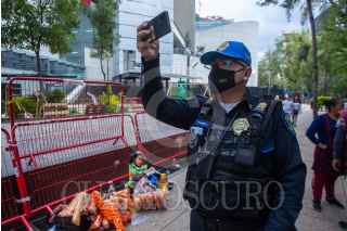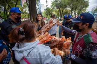 CIUDAD DE MÉXICO, 08SEPTIEMBRE2022.- Funcionarios de la alcaldía Cuauhtémoc, en compañía de policías de la Ciudad de México intentan levantar el trasporte de una vendedora ambulante; en avenida Paseo de la Reforma. FOTO: TOMAS ACOSTA / CUARTOSCURO.COM