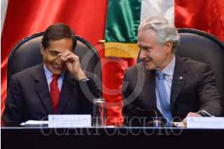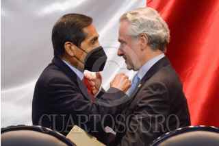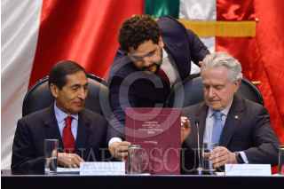 CIUDAD DE MÉXICO, 08SEPTIEMBRE2021.- Rogelio Ramírez de la O, secretario de Hacienda y Crédito Público, entregó el Paquete Económico para el Ejercicio Fiscal 2023 a la Cámara de Diputados. Santiago Creel, presidente de la mesa directiva, e Ignacio Mier, presidente de la Junta de Coordinación Política (Jucopo) presidieron la recepción en el salón Legisladores de la República del Recinto Legislativo de San Lázaro. FOTO: MARIO JASSO/CUARTOSCURO.COM