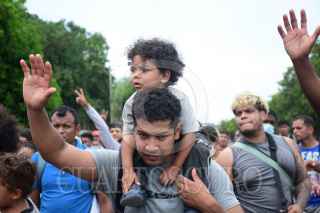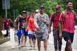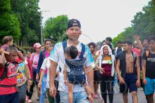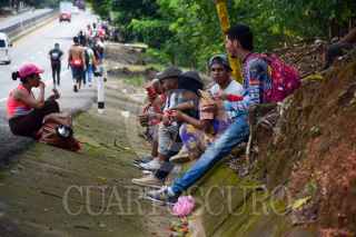 HUEHUETÁN, CHIAPAS, 08SEPTIEMBRE2022.- Un grupo de aproximadamente 800 migrantes camina por la carretera tras no recibir respuesta a su solicitud de tarjeta por razones humanitarias ante el Instituto Nacional de Migración, señalan que salen en caravana para evitar ser extorsionados por autoridades y bandas criminales. FOTO: DAMIÁN SÁNCHEZ/CUARTOSCURO.COM
