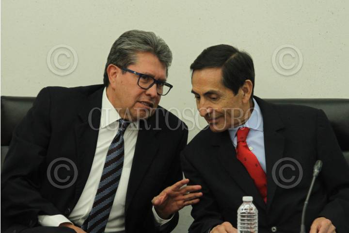 CIUDAD DE MÉXICO, 08SEPTIEMBRE2022.- Rogelio Ramírez de la O, secretario de Hacienda y Crédito Público, entregó el paquete económico 2023 a Ricardo Monreal, coordinador del grupo parlamentario de Morena y a Alejandro Armenta, presidente de la mesa directiva de la Cámara de Senadores, en la sala de JUCOPO del Senado de la República. FOTO: GRACIELA LÓPEZ /CUARTOSCURO.COM