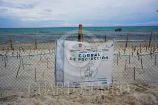 CANCÚN, QUINTANA ROO, 09SEPTIEMBRE2022.- Las tortugas marinas son una especie amenazada actualmente por lo que cuidar de sus nidos es vital para su conservación. Las playas del Caribe Mexicano, además de ser hermosas, tienen el privilegio de ser la sede de un espectáculo en el que las tortugas marinas emergen de los océanos durante las noches de luna llena para depositar sus huevos. De las ocho especies de tortugas marinas que existen en el mundo, siete visitan las playas de México. Gracias a la cooperación de los hoteles y centros turísticos voluntarios, se recolectan miles de huevos al año, la mayoría son colocados en nidos protegidos con una malla y señalados con letreros en donde se protegen lejos de camastros y de los turistas. FOTO: ELIZABETH RUÍZ /CUARTOSCURO.COM