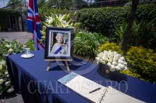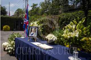 CIUDAD DE MÉXICO, 09SEPTIEMBRE2022.- La Embajada de Reino Unido en México abrió sus puertas a los visitantes, para que estos expresen sus condolencias por la muerte de la Reina Isabel II. Los asistentes escriben sus mensajes en el libro de condolencias de Su majestad la Reina Isabel II. FOTO: TOMAS ACOSTA / CUARTOSCURO.COM
