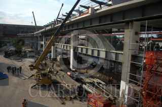 CIUDAD DE MÉXICO, 09SEPTIEMBRE2022.- A dos días de la inauguración de pruebas operativas del Trolebús elevado en el paradero del metro Constitución, trabajadores continúan realizando obras de construcción. FOTO: GRACIELA LÓPEZ /CUARTOSCURO.COM