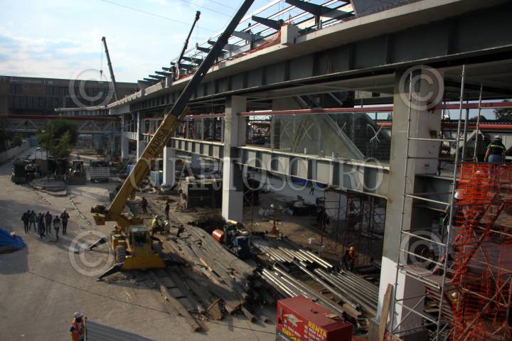 CIUDAD DE MÉXICO, 09SEPTIEMBRE2022.- A dos días de la inauguración de pruebas operativas del Trolebús elevado en el paradero del metro Constitución, trabajadores continúan realizando obras de construcción. FOTO: GRACIELA LÓPEZ /CUARTOSCURO.COM