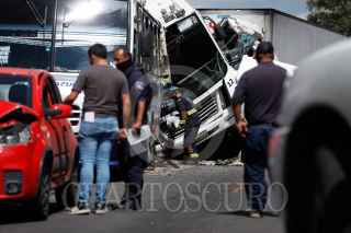 QUERÉTARO, QUERÉTARO, 09SEPTIEMBRE2022.- Un aparatoso accidente se registro en la carrtera 57 en Querétaro. Un trailer se quedo sin frenos provocando un accidente en el que estuvieron involucrados 23 vehiculos. Dejando como saldo 2 lesionados que requirieron traslado y mas de 14 personas con lesiones leves, sin que se hayan reportado fallecimientos. FOTO: CÉSAR GÓMEZ/CUARTOSCURO.COM