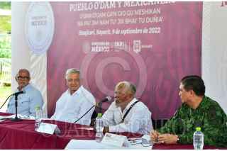 HUAJICORI, NAYARIT, 09SEPTIEMBRE2022.- Andrés Manuel López Obrador, presidente de México, presidió la instalación del Plan de Justicia para el Pueblo O’dam y Mexicanero en San Andrés Milpillas Huajicori, Nayarit. El mandatario estuvo acompañado por: Pamela López Ruiz, directora general de “La Escuela es Nuestra”; Zoé Robledo, director general del Instituto Mexicano del Seguro Social; Hugo Raúl Paulín Hernández, subsecretario de Inclusión Productiva y Desarrollo Rural de la Secretaría de Bienestar; Ariadna Montiel Reyes, secretaria de Bienestar; Adelfo Regino Montes, director general del Instituto Nacional de los Pueblos Indígenas; Miguel Ángel Navarro Quintero, Ggobernador Constitucional del Estado de Nayarit; Flavio Flores, primer gobernador de San Andrés Milpillas; Luis Cresencio Sandoval González, secretario de la Defensa Nacional; Jorge Nuño Lara, subsecretario de Infraestructura de la Secretaría de Infraestructura Comunicaciones y Transportes; Marath Baruch Bolaños López, subsecretario de Empleo y Productividad Laboral y Responsable del Programa "Jóvenes Construyendo el Futuro"; Jesús Ramírez Cuevas, coordinador general de Comunicación Social y vocero de la Presidencia de la República; Abraham Vázquez Piceno, coordinador nacional del Programa de Becas para el Bienestar Benito Juárez; Vicente Rangel Cervantes, presidente municipal de Huajicori; Manuel Ramón Salcedo Osuna, presidente municipal de Acaponeta; Anselmo Dué Ramírez, representante del pueblo Meshikan; Fidencia de Jesús Juárez, gobernadora tradicional de Mesa de la Laguna y Santa Cruz de Acaponeta, Nayarit; Jorge Santillán, comisariado de Bienes Comunales de San Andrés Milpillas; Irineo Cumplido Villa, gobernador tradicional de San Pedro Jícora; Gaytan de la Cruz Juárez, gobernador tradicional de San Buenaventura, Durango; Avelino Juárez Galindo, comisariado de Bienes Comunales de San Buenaventura; Jorge Santillán Flores, comisariado de Bienes Comunales de S
