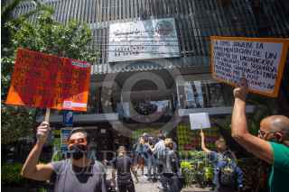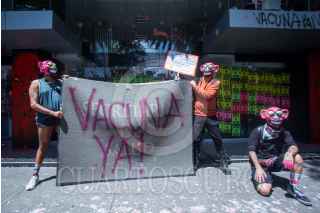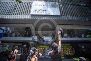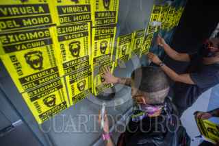 CIUDAD DE MÉXICO, 10AGOSTO2022.- La comunidad LGTB+ se manifestó frente a las oficinas del Consejo de Salubridad General, en la colonia Polanco; para exigir la vacunación contra la "Viruela del Mono". Pues según los manifestantes, son parte de la comunidad en riego y se deben seguir el protocolo de salud que emite la OMS. Los manifestantes pegaron panfletos en las paredes del inmueble e hicieron pintas. FOTO: TOMAS ACOSTA / CUARTOSCURO.COM