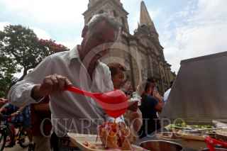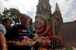 GUADALAJARA, JALISCO, 10SEPTIEMBRE2022.- Hoy en Guadalajara quedo estipulado como el día municipal de la Torta Ahogada, uno de los platillos mas tradicionales de Jalisco y como parte de este festejo el Gobierno municipal regalo 10,000 mil Torta Ahogadas a los tapatíos que se dieron cita esta mañana en las inmediaciones del Paseo Alcalde y de la Plaza Guadalajara. FOTO: FERNANDO CARRANZA GARCIA / CUARTOSCURO.COM