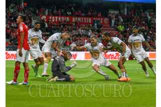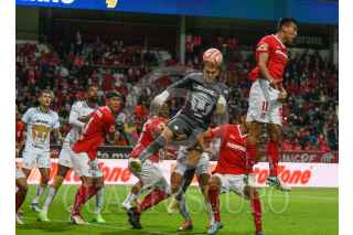 TOLUCA, ESTADO DE MÉXICO, 10SEPTIEMBRE2022.- Las escuadras de los Diablos de Toluca y Pumas de la UNAM empataron el encuentro correspondiente a la jornada 14 del Torneo Apertura 2022 de la Liga MX disputado en el estadio Nemesio Diez, con un marcador final 2-2. FOTO: CRISANTA ESPINOSA AGUILAR /CUARTOSCURO.COM