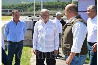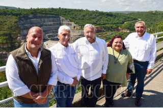 EL ZAPOTILLO, JALISCO, 11SEPTIEMBRE2022.- Andrés Manuel López Obrador, Presidente de México; Enrique Alfaro, gobernador de Jalisco; Adán Augusto López, secretario de Gobernación; y Germán Martínez Santoyo, director general de la Comisión Nacional del Agua (Conagua), supervisaron el reinició de la construcción de la presa "El Zapotillo", la cual aportará 2 mil litros de agua por segundo para la zona conurbada de Guadalajara y la cual se prevé se termine a finales del próximo año. FOTO: PRESIDENCIA/CUARTOSCURO.COM
