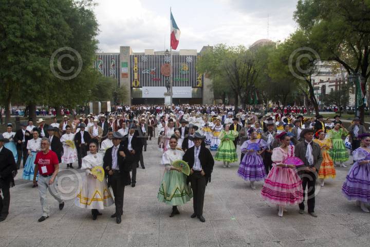 MONTERREY, NUEVO LEÓN, 11SEPTIEMBRE2022.- Monterrey rompió el Guinness World Records del baile folcórico mexicano más grande del mundo con mil 095 bailarines pertenecientes a más de 40 grupos de danza en la Plaza Zaragoza. Los danzantes bailaron durante once minutos corridos norteños y fueron parte del inicio de los festejos por el 426 aniversario de la fundación de Monterrey. FOTO: GABRIELA PÉREZ MONTIEL / CUARTOSCURO.COM