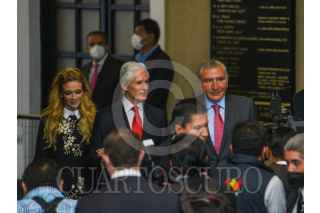 TOLUCA, ESTADO DE MÉXICO, 12SEPTIEMBRE2022.- Alfredo del Mazo Maza Gobernador del Estado de México rindió su 5to Informe de Resultados, teniendo como sede Palacio de Gobierno, acompañado su esposa Fernanda Castillo de Del Mazo, Adan Augusto López Hernández Secretario de Gobernación, dirigentes políticos, gobernadores, magistrados, líderes religiosos, ex gobernadores, secretarios, legisladores locales y federales. FOTO: CRISANTA ESPINOSA AGUILAR /CUARTOSCURO.COM