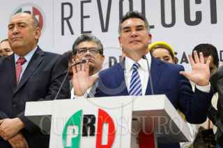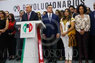 CIUDAD DE MÉXICO. 12SEPTIEMBRE2022.- Alejandro Moreno, líder del PRI, acompañado del coordinador parlamentario Rubén Moreira y de otros legisladores en la conferencia de prensa de su líder está tarde en el CEN del Revolucionario Institucional. FOTO: VICTORIA VALTIERRA/CUARTOSCURO.COM