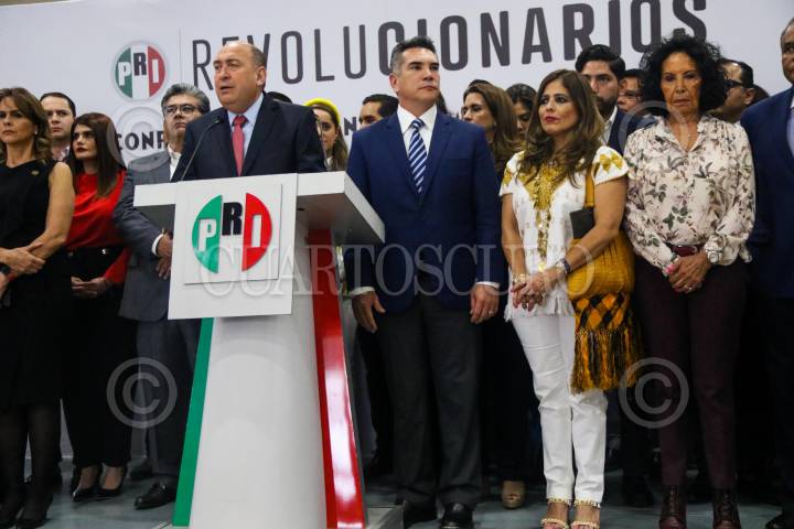 CIUDAD DE MÉXICO. 12SEPTIEMBRE2022.- Alejandro Moreno, líder del PRI, acompañado del coordinador parlamentario Rubén Moreira y de otros legisladores en la conferencia de prensa de su líder está tarde en el CEN del Revolucionario Institucional. FOTO: VICTORIA VALTIERRA/CUARTOSCURO.COM