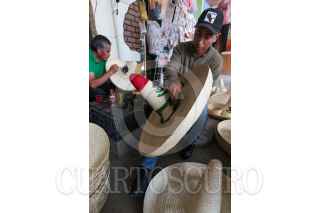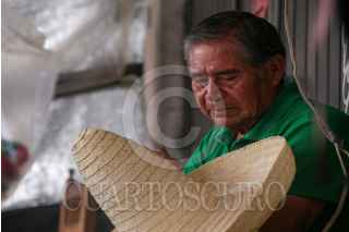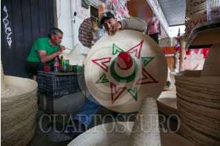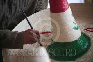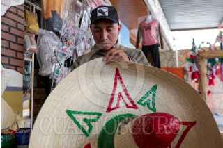 TOLUCA, ESTADO DE MÉXICO, 12SEPTIEMBRE2022.- El regreso de la celebración de las Fiestas Patrias representa un respiro para muchos artesanos de San Cristobal Huichochitlán, delegación de la zona norte de Toluca, que se caracteriza por la elaboración del sombrero charro de palma, Gonzalo Peñaloza tiene más de 10 años dedicándose a la elaboración de estos sombreros que engalanan los festejos patrios, empiezan a trabajarlos en el mes de junio y los venden en esta delegación, desafortunadamente durante Pandemia por COVID-19 no tuvieron ventas pero este año esperan recuperarse. El costo de los sombreros va de los 15 hasta los 75 pesos por pieza. FOTO: CRISANTA ESPINOSA AGUILAR /CUARTOSCURO.COM