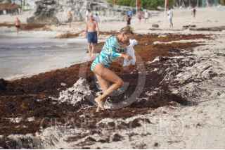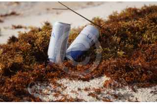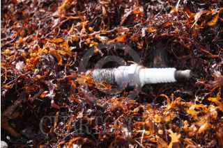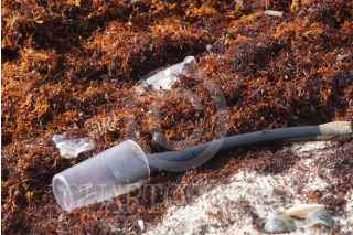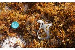 CANCÚN, QUINTANA ROO, 14SEPTIEMBRE2022.- Tapas de plástico, botellas, ligas y hasta una bujía es lo que se puede encontrar entre los mantículos de sargazo en Cancún. Los artículos son parte de lo que el mar expulsa, así como huella del paso de turistas nacionalesy extranjeros por la playa Gaviota Azul . FOTO: ELIZABETH RUIZ/CUARTOSCURO.COM