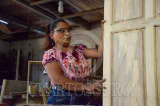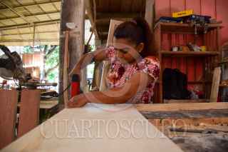 TAPACHULA, CHIAPAS, 14SEPTIEMBRE2022.- Roxana Sánchez tiene siete años de experencia trabajando como carpintera e integra la segunda generación en este oficio al interior de su familia. Maneja diferentes máquinas para cortar la madera y elabora muebles, accesorios y utencilios, y es a través de este trabajo que costea los estudios de sus hijos y ofrece empleo formal a terceros. FOTO: DAMIÁN SÁNCHEZ/CUARTOSCURO.COM