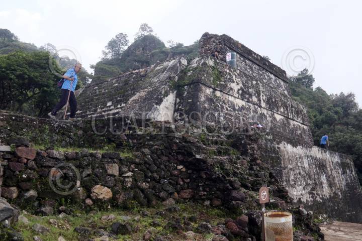 TEPOZTLÁN, MORELOS, 14SEPTIEMBRE2022.- Luego de dos años y medio de estar cerrada debido a la pandemia del Covid -19 y los incendios forestales de marzo pasado, la zona arqueológica El Tepozteco reabrió al público. Esta zona arqueológica es la más visitada del estado de Morelos y para esta reapertura el Instituto Nacional de Antropología e Historia impuso un aforo máximo de 750 personas, un horario de 09:00 a 16:00 horas y un costo de 85 pesos. El recorrido desde el pueblo mágico de Tepoztlán no lleva más de una hora y en él se puede ascender por una empinada cañada con formaciones rocosas únicas a los lados, fauna y flora de la zona, riachuelos y al llegar a la pirámide se observa la vista panorámica de Tepoztlán. FOTO: MARGARITO PÉREZ RETANA / CUARTOSCURO.COM