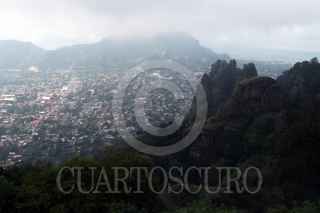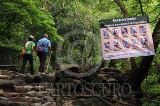 TEPOZTLÁN, MORELOS, 14SEPTIEMBRE2022.- Luego de dos años y medio de estar cerrada debido a la pandemia del Covid -19 y los incendios forestales de marzo pasado, la zona arqueológica El Tepozteco reabrió al público. Esta zona arqueológica es la más visitada del estado de Morelos y para esta reapertura el Instituto Nacional de Antropología e Historia impuso un aforo máximo de 750 personas, un horario de 09:00 a 16:00 horas y un costo de 85 pesos. El recorrido desde el pueblo mágico de Tepoztlán no lleva más de una hora y en él se puede ascender por una empinada cañada con formaciones rocosas únicas a los lados, fauna y flora de la zona, riachuelos y al llegar a la pirámide se observa la vista panorámica de Tepoztlán. FOTO: MARGARITO PÉREZ RETANA / CUARTOSCURO.COM
